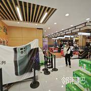 展位位于超市收银台,出超市的人都可看到展位信息,以周边社区居民为主,消费能力较强,频次较高。展位方正,两面靠墙,适合搭建小型店